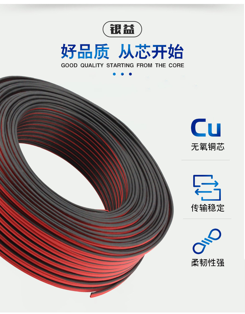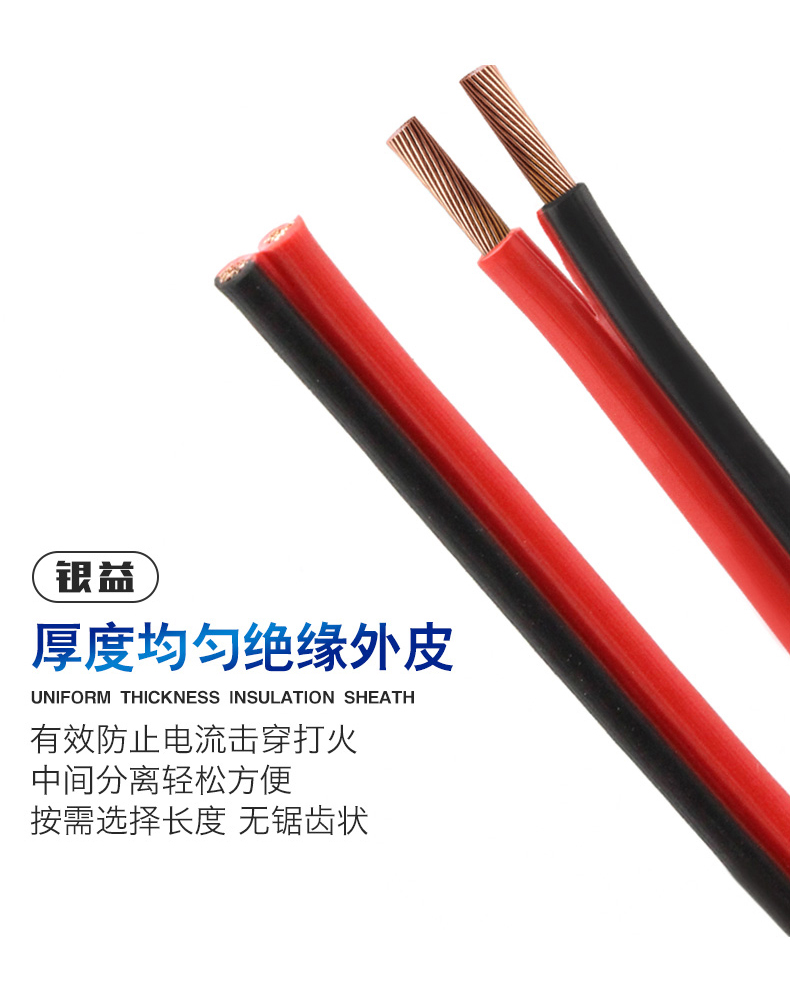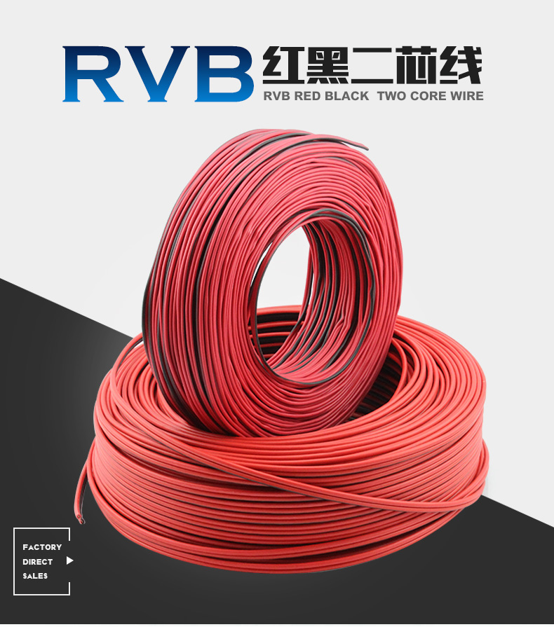 RVB國標純銅2芯0.5 0.75 1.5平方花線紅黑平行喇叭led電源監控線 國標純無氧銅